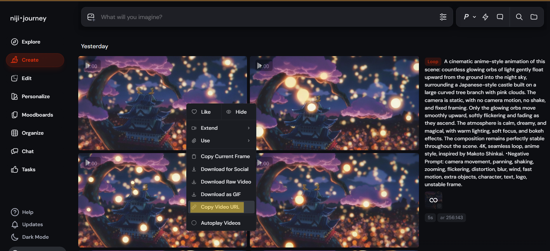 3️⃣ ステップ3:AIで『魂』を吹き込む(nijijourneyでサイトの背景動画を作成)